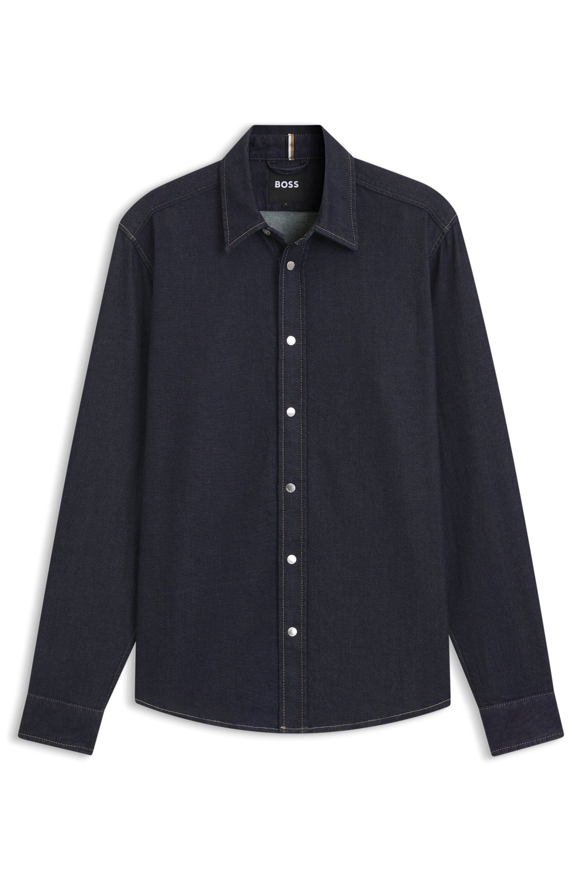 Create timeless casual looks with this regular-fit shirt, crafted in stretch denim made with Egyptian cotton. Rich indigo shade. Branded press studs.